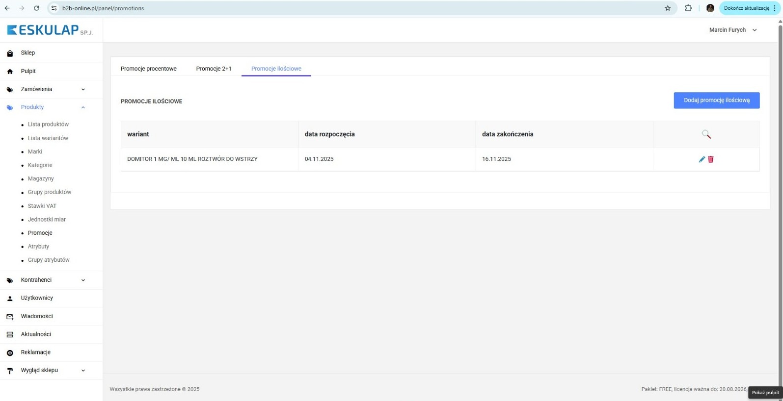 Wszystkie promocje tworzymy w zakładce Produkty 🡪 Promocje