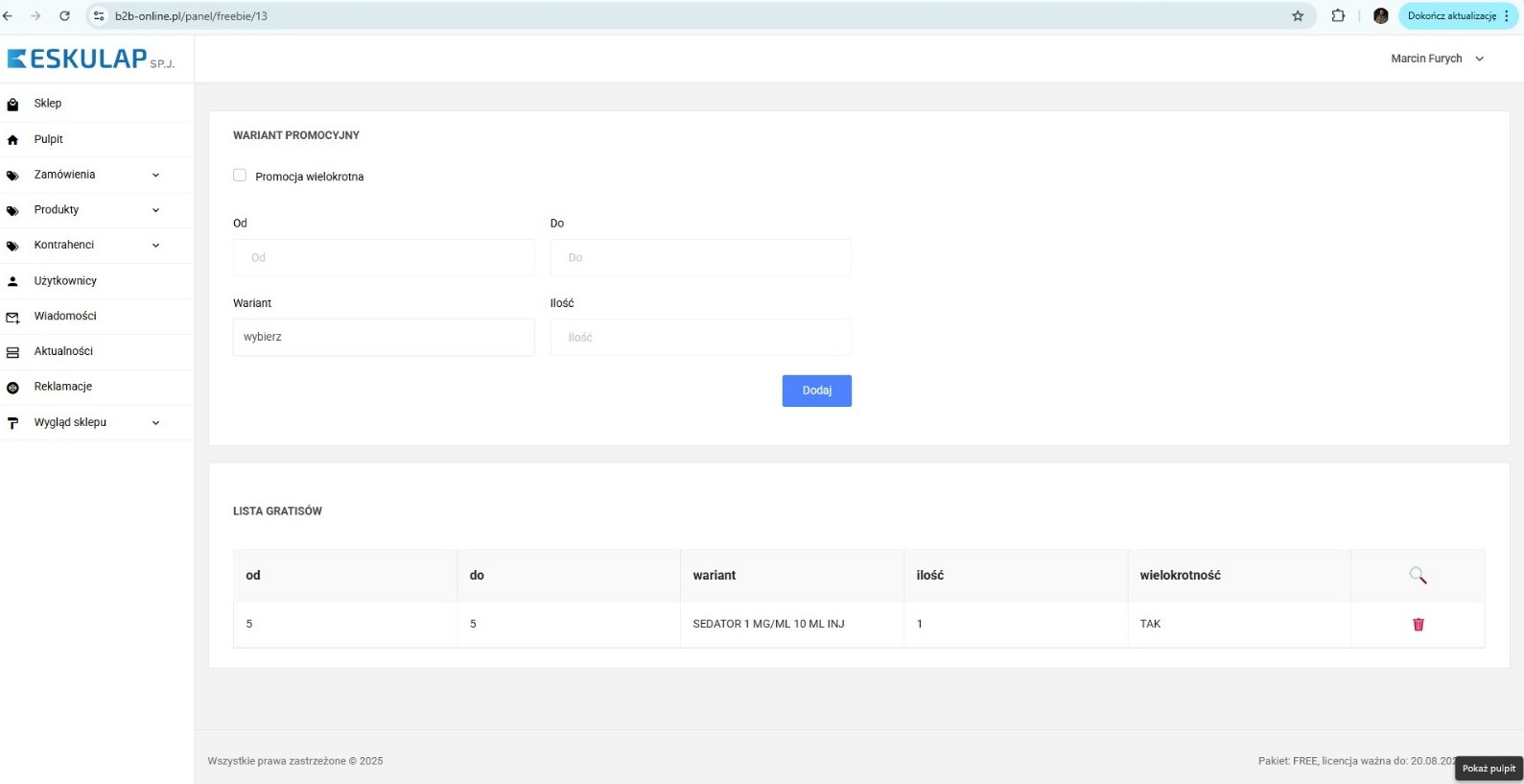 - Wybrać zakres ilościowy – po zakupie jakiej ilości będzie przysługiwał gratis.